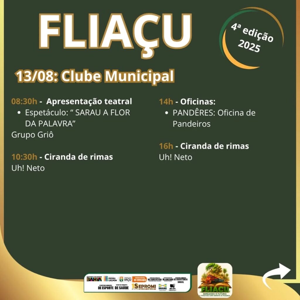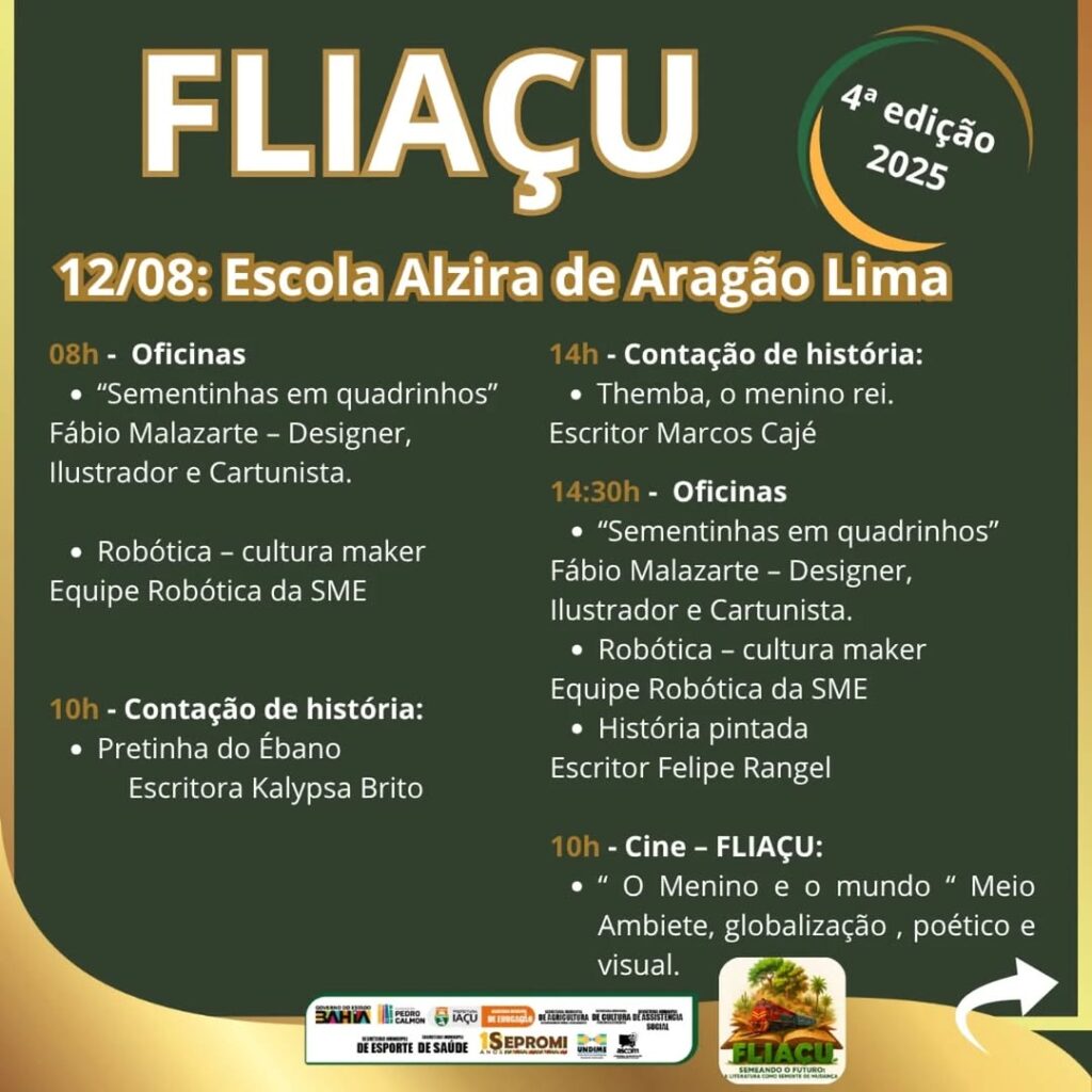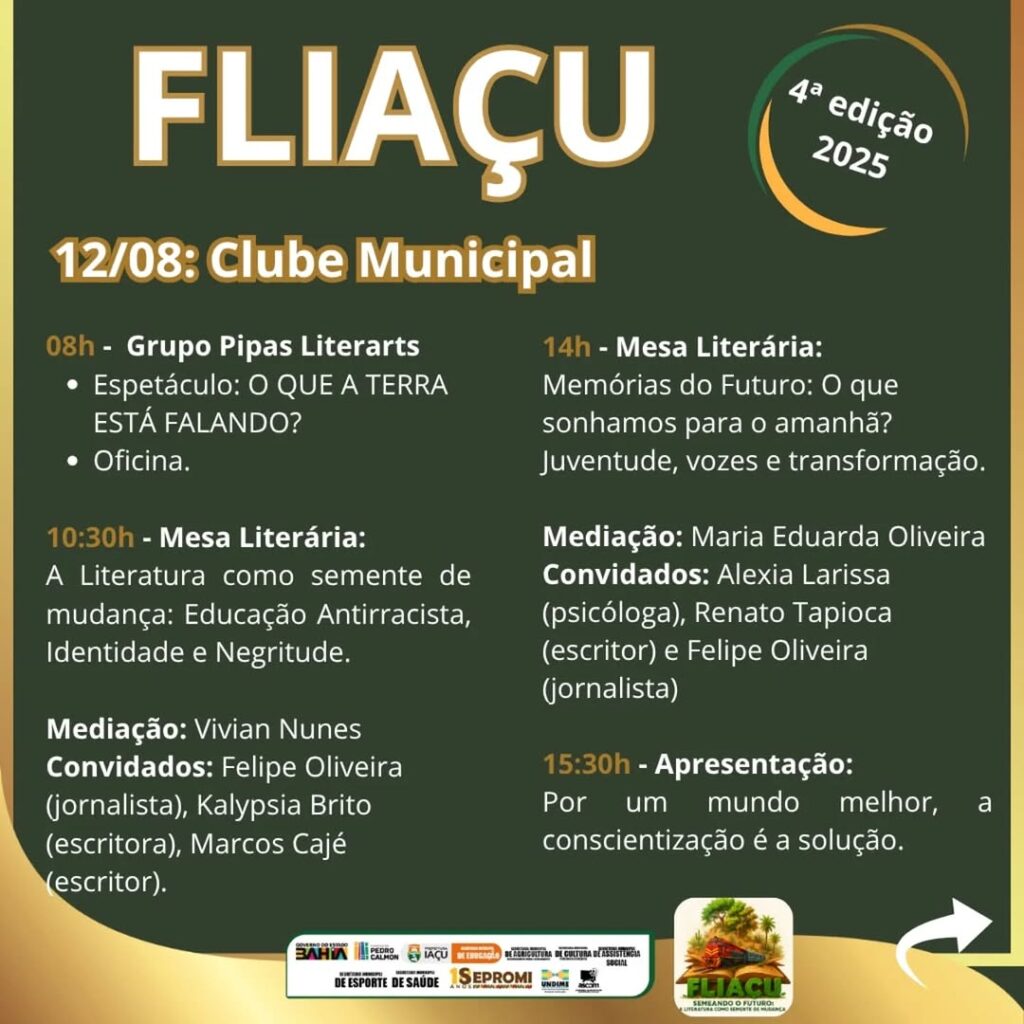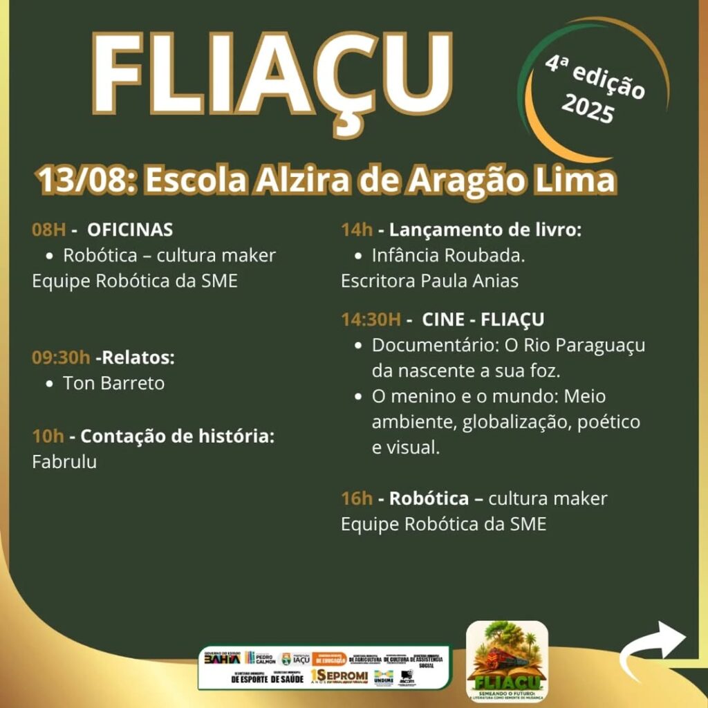 “Mais do que um evento, a Fliaçu se consolida como projeto pedagógico e de intervenção social, capaz de mobilizar escolas, famílias e instituições em torno da leitura, da preservação ambiental e do desenvolvimento humano. Todos os temas, embora distintos, dialogam entre si, formando uma trama contínua de valorização cultural, preservação da memória e promoção da cidadania. A cada edição, a Fliaçu semeia mais que palavras: planta ideias, desperta consciências e cultiva, no coração de Iaçu, a certeza de que a literatura é um instrumento de mudança”, diz o professor.